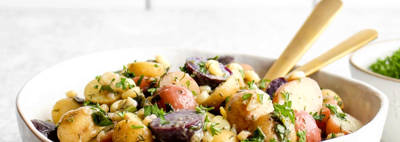 Whether served warm or chilled, this sweet corn potato salad is a crowd-pleasing side dish that proves delicious doesn’t have to be complicated.